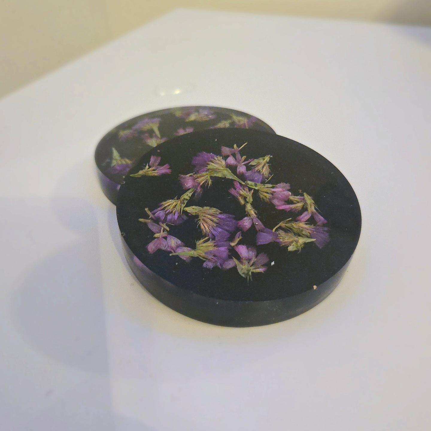 Add a touch of nature’s charm to your table with our Bloom & Sip Coasters. Sold as a pair, each set of coasters are crafted with real flowers encased in resin, preserving their beauty in a timeless design. The colors vary, making every set as unique as the blooms themselves.