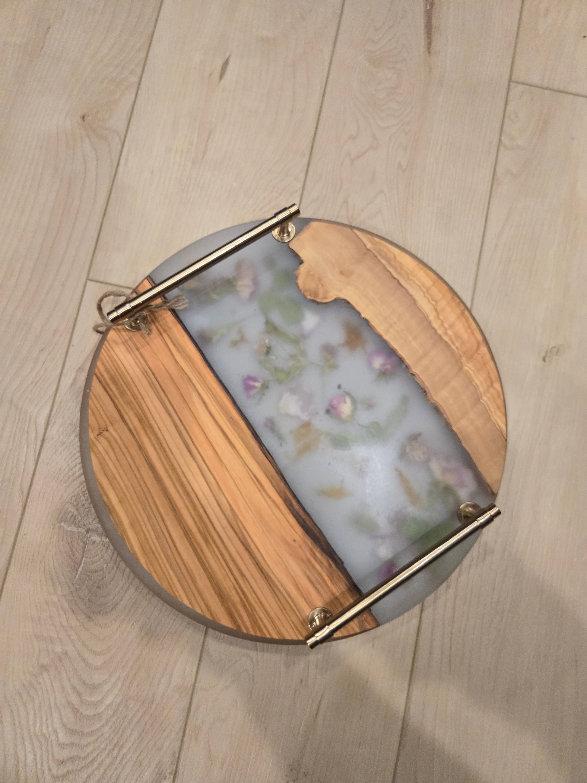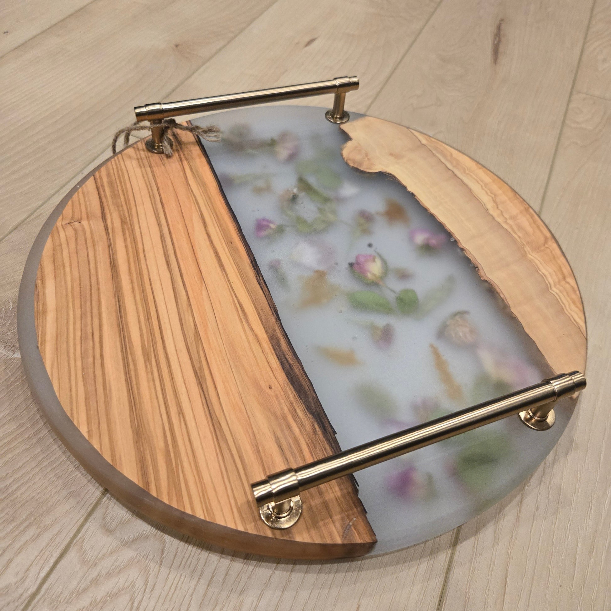 Bring elegance and charm to your table with the Blush Bloom Charcuterie Board. Handcrafted from richly grained olive wood, this round serving board features a stunning resin inlay with delicate peachy-pink flowers, creating a soft, romantic look that feels like a piece of art.